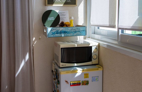 While you're here, you can enjoy all the comforts of home and more, including a private pool and a refrigerator, as well as a stovetop and WiFi. Other amenities include towels, an electric kettle, kitchenware and utensils, and housekeeping.