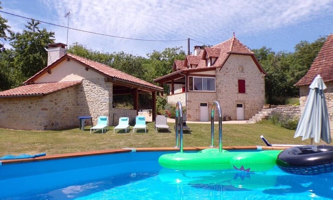 Ideally situated close to the Dordogne Valley and the major tourist sites of the Lot, Le Gite de Politou (named after the poet who occupied it!) is a beautiful character house with a high quality renovation. Outside, you will appreciate the above ground swimming pool and the covered shelter for 2 cars, inside, you will appreciate the modern kitchen perfectly equipped, the veranda allowing you to have your meals in the shade, the light and warm tones in all the rooms, and the high comfort equipment at the disposal of the guests. In the heart of a small peaceful hamlet and less than 5 minutes from shops and services, Le Gite de Politou is a perfect place for a relaxing holiday.A few steps lead to the covered terrace/veranda, then on the same level: the living room with sofa bed and TV screen plant, separate fully equipped kitchen, 1 bedroom with a double bed and its shower room, separate toilet. Upstairs, 2 bedrooms each with a double bed. Unfenced ground, covered shelter. Oil-fired heating.