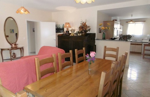 Welcome to our gîte, a detached 19th-century house, typical of the area, surrounded by corn fields. It boasts a 1500m² plot of land, an outdoor terrace, and a covered terrace with a barbecue. Inside, you'll find a living room with a kitchen separated by a counter, a dining room, and a living room, a pantry, three bedrooms (two 1.40m x 1.90m beds, two 100x200m beds), a bathroom, and a separate toilet. A covered carport is available for parking up to two cars, with an electric vehicle charging point. Electric heating is available. Owner-owned winery. Pets welcome with a deposit. Bed linens, towels, and an end-of-stay cleaning service are available for an additional fee. Kitchen linens are provided. Wi-Fi access is available. Tourist tax is additional.