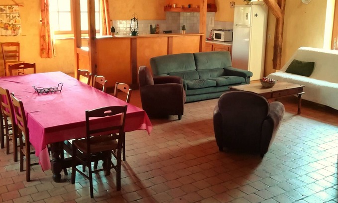 Located in a medieval architectural ensemble, lovers of history and old stones will be seduced by this gîte in a former sheepfold from the 19th century. You will be able to visit the particularities of the place, in particular the dovecote and a large underground room which were used as sets for the filming of the film "The Man in the Iron Mask". The large interior spaces are particularly appreciated by our guests. You will be able to spend convivial moments while finding your peace of mind. Our sheep and donkeys are delighted when the children come to bring them bread. And depending on the season, a basket of fruit or vegetables will be waiting for you on your doorstep. Many activities, cultural or sporting, to share with friends or family, are to be discovered in the surroundings. Ground floor: living room/living room with open kitchen, 1 bedr. (2 beds 90x200) with private shower room, linen room, separate WC. Floor: 4 bedrooms. (1-2: 3 90x190 beds, 3-4: 1 140x190 bed with private shower room), bathroom, 2 separate toilets. Equip. extra: freezer, DVD player, washing machine, baby cot/high chair. Included: wood. Not included: heating. fuel oil, electricity, sheets option (€10 per pair), bathroom/house linen option, end-of-stay cleaning option (€100). Internet access. To see: the village of Asnières sur Vègre and its church, the abbey of Solesmes. Even if there is no Label "Tourism and handicap", our lodging, however, installations which can allow the stay of people with reduced mobility or having another handicap. First of all, if the surroundings are in small fine gravel, there is an access ramp to reach the terrace, in bricks and wood. The ground floor is very large, without a door to go from one room to another, but just a wide opening, which makes it possible to move around without too much difficulty. There is also, on this level, a bedroom, whose door is wider than an ordinary door, and an adjoining shower room which includes a raised toilet, with a bar on the left, and a large shower on the left. Italian. Cleaning fee in addition: 150€. You will find on your arrival, in the kitchen, salt, pepper and some condiments, tea towels in the kitchen, as well as aluminum foil, cling film, paper towel, garbage bags and dishwashing liquid. In addition to an electric coffee maker, with an integrated filter, there is a Malongo capsule coffee maker. For those who choose to clean, there are products for this purpose, in each bathroom or bathroom, a vacuum cleaner, broom, bucket and mop with the washing product. There is also hydro-alcoholic gel and masks at your disposal; toilet paper in each toilet. Outside, a stone trough in which is planted, thyme and rosemary, to season your cooking and in season, a foot of cherry tomatoes. Generally, we wait for our hosts who will have given us their arrival time, beforehand by telephone. In case we are not available at this time, we leave the key in a place agreed together and we come to introduce ourselves as soon as we return. If by chance, which rarely happens, we are absent and cannot show up quickly, it has already happened that my mother, who does not live very far away, makes herself available for reception and entry into the gite. . It always goes very well. Optional services to be paid on site and to be reserved before your arrival: - Kitchen linen: 12.77€ per stay Unless stated, services such as cleaning, bed linen, towels etc. are not included in the price of this rental. If pets are allowed (information in the advertisement), charges may be applicable. Only equipment mentioned in this advertisement are present. Equipment not mentioned are not considered to be present.