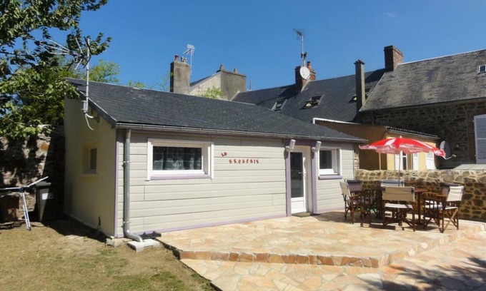 Detached house near the owners. Kitchen. 1 bedroom: 1 double bed. Shower room. WC. TV. Washing machine. Baby bed and chair. Remote Wi-Fi access, via the owners' box, not suitable for professional use. Electric heating at an additional cost. Sheets and household linen for hire. Cleaning service at an additional cost. Independent, unfenced land, well on site. Terrace. Garden furniture. Barbecue. Parking. On the edge of a boulevard near the centre of Granville, this small, detached, single-storey house is hidden behind the home of Brigitte and Georges, the owners. Ideal for a stay for two, it has a pleasant private terrace, a garden and a car park! A real "plus" in the corsair city, especially in the summer. You can enjoy the beach 1km away and the shops 400m away. Completely renovated interior.