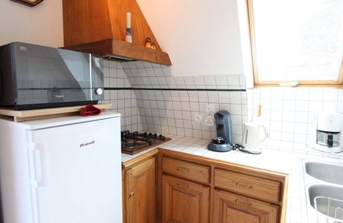 You benefit from a bright living room with large bay window opening directly onto the terrace, flat screen TV, kitchen area equipped with combined microwave/grill oven, a bedroom with 1 double bed, a bedroom with 2 single bunk beds, shower room (narrow shower 0.65mX1.10m), separate toilet, washing machine and dryer available. Electric heating according to consumption.