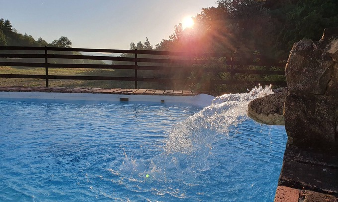 The swimming pool, common to the two gîtes & the guest rooms, is located below the house in the middle of the vineyards.