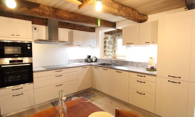 Located in the heart of the Châtaigneraie cantalienne, at the gateway to the departments of Lot and Aveyron, this semi-detached house of character completely renovated in 2024 welcomes you in a calm environment. It combines the charm of yesteryear with its beams and exposed stones, with a neat decoration.
