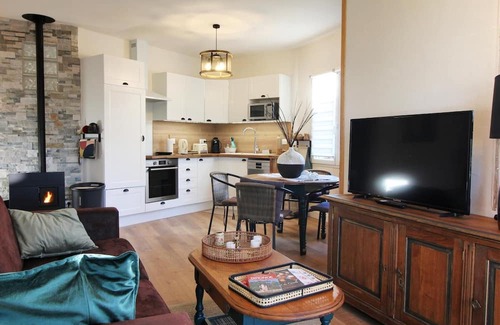 This cottage is perfect for a relaxing break for two. It backs onto the owners' house, with its tree-lined garden, patio furniture, deckchairs, and private spa set in a relaxing space. It features a living room with a fully equipped kitchen (fridge/freezer, oven, microwave, coffee maker, kettle), a dining area and a lounge area with a television, a pellet stove, a bedroom with a 140x190 double bed, and a bathroom with a shower, bathtub, and toilet. For your comfort, bed linens, towels, kitchen linens, and electric heating are included. Pellet stove use is an additional charge. End-of-stay cleaning is an optional extra. The cottage is ideally located for exploring Bordeaux, the fine sandy beaches, the Arcachon Bay and the Dune of Pyla, the vineyards, seaside resorts such as Lacanau Océan, Carcan, and many others... not to mention major events such as the Médoc Marathon, the Rallye des Fougères, the Pauillac Film Festival, Soulac 1900, and more. We will be delighted to welcome you and will do everything we can to make your stay an excellent one! Reserved for private rentals.