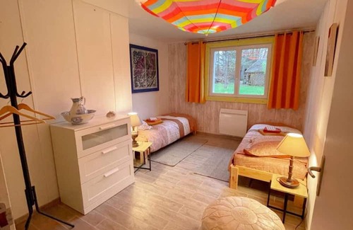 All-inclusive gîte (except tourist tax) of approximately 90m2 on one level, adjoining the owners' house, on 12 hectares of wooded land with a pond. Entrance with laundry area (washing machine, dryer, freezer). Living room with table and chairs, lounge area with sofa, armchairs, flat screen TV. Equipped kitchen: filter coffee maker and pod coffee maker (Nespresso), kettle, toaster, microwave, 4-burner gas stove, oven, etc. Bathroom with walk-in shower, 1 sink, towel dryer. Independent WC with sink. Bedroom 1: 2 single beds (80x200). Bedroom 2: 1 double bed (140x190) and 1 single bed (90x200). Ping-pong table and leisure equipment (bowls, balls, rackets, etc.). Private terrace with garden furniture, sun loungers, etc. Independent entrance. Covered car shelter. Possible storage of bicycles or equipment. Free WIFI. Non-smoking accommodation. Loan of 2 adult bikes on request. Welcome to “La Boulauderie”, located in Millançay, a village with rural charm. Your accommodation is in the heart of a vast property typical of Sologne, wooded and with a pond where you can recharge your batteries and observe small animals. The gîte, on one level, is fully equipped and carefully decorated by the owners (you can discover Madame's works on the walls). This will also happily introduce you to ceramic painting. Nearby, landscapes of moors and forests, hiking trails and walks to be explored on foot, by bike or on horseback. A few kilometers from the town center you will find the Malzoné Reserve, with its preserved natural heritage, where you can observe many waterbirds. You are 15 minutes from Romorantin, capital of Sologne, 30 minutes from the Motte Beuvron Federal Equestrian Park. For lovers of Loire castles, Cheverny and Chambord are 30 km away. The price does not include: CHARGING YOUR ELECTRIC VEHICLE IS NOT ALLOWED IN THIS ACCOMMODATION. Microwave, Enclosed area, Washing machine, Dishwasher, TV, Children's games, Single storey, Garden furniture, Barbecue, Bedroom on the ground floor, Freezer, Tumble dryer, Internet access, Sofa bed, Sheets included, Non-smoking, Baby bed and chair, Private parking, Heating included, Terrace, Garden, Bicycle or mountain bike, Towels included, End of stay cleaning included, Individual house. Property managed by a professional. Unless stated, services such as cleaning, bed linen, towels etc. are not included in the price of this rental. If pets are allowed (information in the advertisement), charges may be applicable. Only equipment mentioned in this advertisement are present. Equipment not mentioned are not considered to be present.