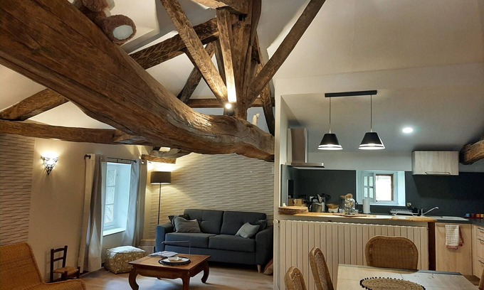 Just a short distance from the riverside, this pet-friendly apartment lets you experience it all. With convenient onsite parking, you'll be ready to make the 27-minute drive to Marais Poitevin Regional Nature Park or the 33-minute drive to Zoodyssée Animal Park.