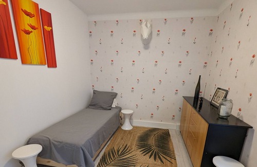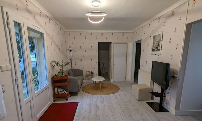 Single storey house not overlooked and completely renovated. This charming and comfortable family gîte "Chez Suzanne" is located just 500 m from La Loire à Vélo, 1.6 km from the Château de Sully-sur-Loire and 26 km from the Château de Gien. You can enjoy many activities in the surrounding area: visiting the monuments of Sully-sur-Loire and the surrounding area such as the Carolingian oratory of Germigny-des-Prés, walking or cycling on the banks of the Loire, canoeing on the Loire or even have a picnic... Combining comfort and conviviality, this cottage is ideal for families and professionals. Single-storey gîte, it includes: a living room with flat-screen television, dining room and equipped kitchen open to the living room, two bedrooms each with a 140x190 cm double bed, a bathroom accessible to disabled people with seat and grab bar with WC. Additional sleeping area open to the living room separated by a curtain with two stackable single beds 80x190 cm (very low height). Private garden. Private parking in the property (2 cars). Towels and sheets are provided. Beds made on arrival. End of stay cleaning offered as an option. Autonomous arrival and departure with key box. Shower room accessible to PRMs with seat and grab bar. Door width 0.90 m. A ramp will soon be built in front of the entrance to replace the current steps. Autonomous arrival and departure with key box. Arrival between 2 [hidden] and 7 [hidden] Departure at 10 [hidden] For all requests, please contact the person in charge of the gîte: Mr. HOUDAS Vincent on [hidden]. Optional services to be paid on site and reserved before your arrival: - End of stay cleaning: €63.83 per stay Property managed by a professional. Unless stated, services such as cleaning, bed linen, towels etc. are not included in the price of this rental. If pets are allowed (information in the advertisement), charges may be applicable. Only equipment mentioned in this advertisement are present. Equipment not mentioned are not considered to be present.