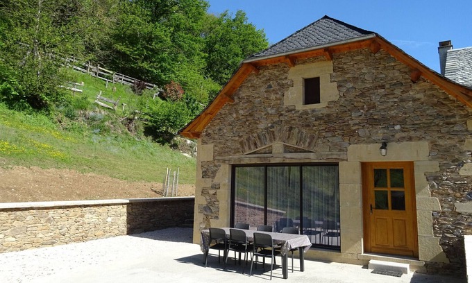 On RN 88 (Rodez/Laissac axis), take D28 then D45 direction St Geniez d'Olt then in St Geniez take direction Ste Eulalie. At Ste Eulalie, do not take the first turn on the right towards Ste Eulalie d'Olt. After the sawmill, turn right towards Cabanac. Return to the village of Ste Eulalie. Turn left towards the cemetery and turn left after the cemetery. Go about 3 km and in Cabanac, the cottage is located on the right up high (stone house with large bay window).