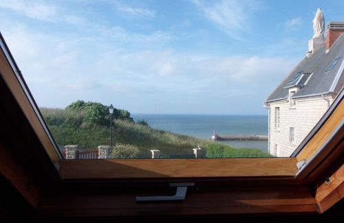 Welcome to 'Refuge Portais': Lovely detached house with sea view, all modern conveniences, and garden for 4 people. The house is located in the heights of a small Normandy fishing harbour in Port-en-Bessin. It has a dominating view over the sea and a peaceful location close to fields, at the foot of 'La Vierge des Feux' and a 36-hole golf course in Port-en-Bessin.