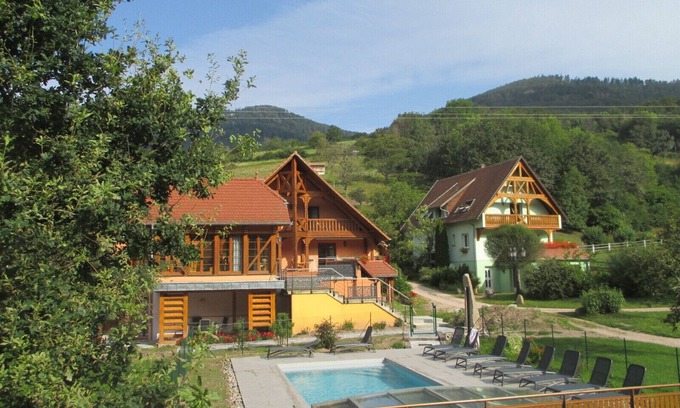 Best-rates for the Breitenbach cottage starts from $133 per night with includes Pool, Bedding/Linens, Fireplace/Heating, Child Friendly, Kitchen, Laundry, Parking, TV, Balcony/Terrace, Security/Safety, Wellness Facilities, Barbecue/Outdoor Cooking, Internet StayAndPlay offers fully equipped golf villas, golf hotels, golf resorts, luxury golf cabins, and exclusive golf retreats, making it easier than ever to find your perfect golf escape — ideal for families, peaceful getaways, or pet-friendly retreats with the whole crew.