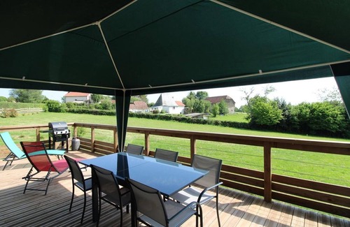 This gîte benefits from an open plot of 1600 m² and a large south-facing wooden terrace with garden table, deck chairs and gas barbecue.