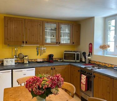 Offering a garden, Gite - Val Couesnon offers accommodations in Saint-Ouen-de-la-Rouërie. Both free Wifi and parking on-site are available at the vacation home free of charge. The accommodation provides full-day security and a concierge service for guests. Providing a terrace with garden views, this vacation home also provides guests with a satellite flat-screen TV, a well-equipped kitchen with a dishwasher, an oven, and a microwave, as well as 2 bathrooms with a bath. There's also a seating area and a fireplace. Mont Saint Michel Abbey is 14 miles from Gite - Val Couesnon, while Mont Saint-Michel is 14 miles away. Rennes–Saint-Jacques Airport is 35 miles from the property.