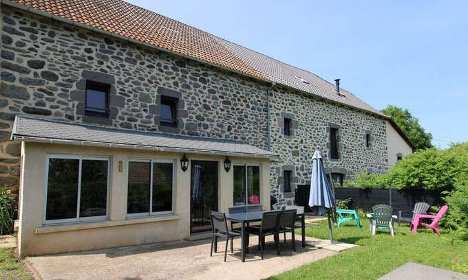 In the heart of the Auvergne Volcanoes Regional Nature Park, this gîte adjoining another gîte is nestled in a small mid-mountain hamlet at an altitude of 1100m. The owners, who live just behind the gîte, are at your service and welcome you 3 km from Valuéjols in the heart of the Saint-Flour planèze. Nearby, you can enjoy outdoor activities: hiking in the Cantal mountains, downhill skiing at the Prat de Bouc and Super-Lioran ski resorts, cross-country skiing and snowshoeing at the Ché ski lodge, swimming and water sports in the Truyère gorges and fishing in the Ander, Alagnon and other small surrounding streams. You can also discover the wealth of the regional built heritage by visiting the medieval cities of Murat and Saint-Flour, the castle of Alleuze where one of the cult scenes of the film "La Grande Vadrouille" with Louis de Funès and Bourvil was filmed, the Garabit viaduct, the work of Gustave Eiffel and the thermal spa of Chaudes-Aigues renowned for its hottest spring in Europe with water at 82 ° C. This cottage has a private unfenced plot of 400m² with garden furniture and barbecue and a veranda with relaxation lounge. On the ground floor, living room with flat screen TV and internet access with fiber, dining room with pellet stove (7 € per bag), fitted kitchen area, 1 bedroom (ceiling height 2 m) with 1 bed 160X200, shower room and separate toilet with washer-dryer. On the 1st floor, 1 large bedroom with 1 bed 180X200 and 1 bedroom with 2 single beds. Electric heating according to consumption. Pet deposit 50€ and cleaning deposit 60€. Possibility of renting with gîte 676.