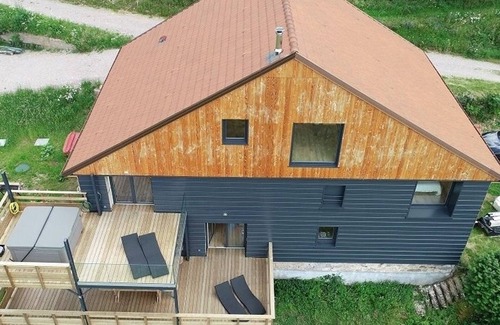 At the start of hiking trails, group gîte on 3 levels: Ground floor with common room with open kitchen, bathroom and WC accessible to PRM, professional sink, laundry room and changing room. 1st floor: 5 double bedrooms including 1 PRM, each with its private bathroom, relaxation area with infrared sauna and access to terrace and its SPA. 2nd floor: 2 dormitories for 5 people with 1 shared bathroom, games room with table football and access to a suspended net. Wifi and 4G network. The gîte is not labeled Tourism and Handicap but is accessible to PRM: Bedroom and its adapted bathroom + stair lift.