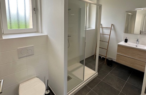 [hidden] The Gîte du Soleil dans la Ruelle is equipped on the ground floor with a bedroom, a bathroom and a PMR-certified toilet.