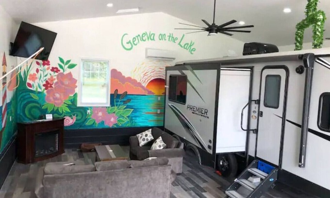 Glamorous Camping - Hot Tub - GOTL - Sunset Vacation Rentals is located in Geneva-on-the-Lake. Glamorous Camping - Hot Tub - GOTL - Sunset Vacation Rentals provides accommodation, featuring Internet, Kitchen, Fireplace/Heating, among other amenities. This House features Internet, Kitchen, Fireplace/Heating, to make your stay a comfortable one.