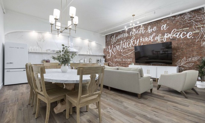 There are 4 bedrooms and 2 full bathrooms. Enjoy a street walk, a bottle of wine or a game night with those you love. Smart Tv’s are located throughout the suite with the option to add any streaming platform from your phone. High speed WIFI runs throughout the Suite making sure that if you need to get work done or relax, it’s there. Bachelor/Bachelorette/Family groups/Business trip? They're all perfect for this location! During the weekend, a lot of families visit the slugger museum and science center just a few blocks away. Many bourbon tours leave regularly from our location. We are a block from fourth street live, 3 blocks from KY center for the arts(symphonic/broadway shows), 1 block from the YUM center and across the street from the convention center.