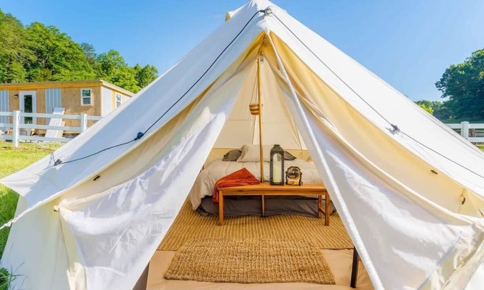Welcome to our Glamporous Yurt! Located just 15 minutes from Downtown Chattanooga, this tent farmcation provides a quiet and relaxing stay with easy access to city life! Here you will find one bedroom, one bathroom, and arrangements to sleep four guests. Enjoy the open air in our tranquil setting. Inquire about using the pool! We would love to host you!