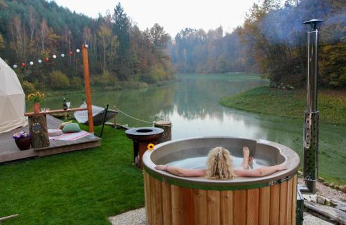 20 miles from Park Mirakulum in Sudoměř, Glamp SunnyMoon features accommodations with access to a sauna, spa facilities, and open-air bath. Guests staying at this luxury tent have access to free Wifi, a fully equipped kitchen, and a terrace. Outdoor seating is also available at the luxury tent. Towels and bed linen are available in the luxury tent. The accommodation offers an air conditioning, a heating, and a private bathroom. A selection of options including local specialities, fresh pastries, and cheese are available for breakfast. Guests at Glamp SunnyMoon can enjoy cycling nearby, or make the most of the garden. Vaclav Havel Prague Airport is 50 miles from the property.