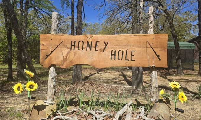 Outdoor enthusiasts tired of skyscrapers, cars on the street, & busy people running around? Bring your family & friends to enjoy this lakefront cabin with a gorgeous mountain view! Our cabin by the beautiful Sardis Lake in Oklahoma has 2.5 acres of land full of wild life. A private stocked fishing pond & outdoor playing area with zipline, slackline, hammock, tree-climbing kit, fire ring, BBQ grill, & game machine will make everybody happy if swimming, boating, fishing & hunting are not enough!