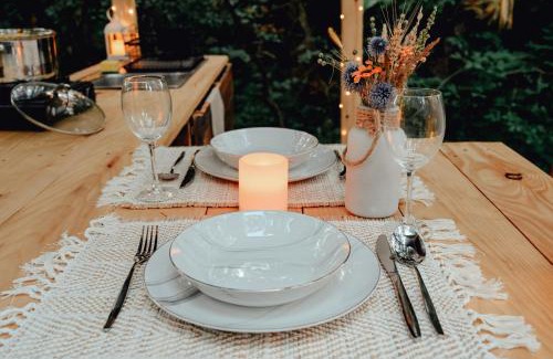 Providing a garden, Glamping ŠumVody provides accommodations in Humenné. This property offers access to a terrace and free private parking. Outdoor seating is also available at the luxury tent. Towels and bed linen are provided in the luxury tent. The accommodation is non-smoking. There is an on-site bar. Zemplinska Sirava is 28 miles from Glamping ŠumVody, while Vihorlat is 12 miles away. Kosice International Airport is 56 miles from the property.