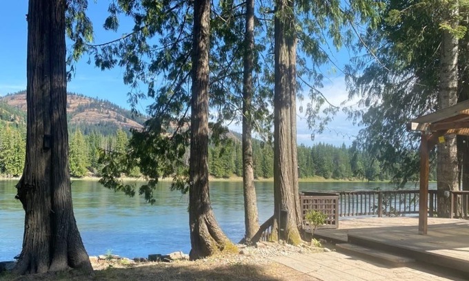 Sleeps 6, river view from the master bedroom. Come stay at our relaxing waterfront getaway on the beautiful Clark Fork River. Nestled in the Cabinet Mountains, 5 miles from Lake Pend Oreille and less than 5 minutes to the town of Clark Fork is where your stay will be. Charter fishing, skiing, mountain biking, and hiking trails galore just minutes from the front door.