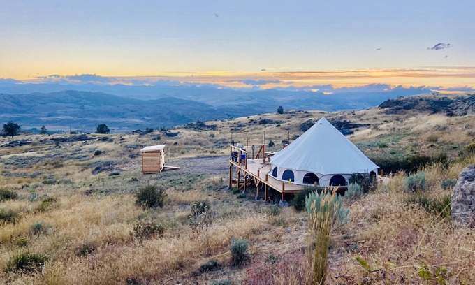 Glamping Bell tent with amazing mountain views! is located in Tonasket. Glamping Bell tent with amazing mountain views! provides accommodation, featuring Parking, Pet Friendly, Sports/Activities, among other amenities. This RV Rental features Parking, Pet Friendly, Sports/Activities, to make your stay a comfortable one.