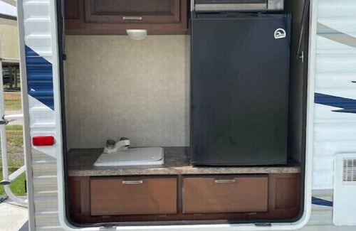 This unit out of the 2 RVs, that sits on this lot, I consider this to be our flagship. Guest like that it’s bigger and it is also equipped with an outdoor kitchenette so that you can stay outside and relax or camp.