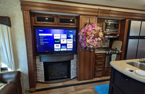 Glamping in a luxurious Travel Trailer is located in Georgetown. Glamping in a luxurious Travel Trailer provides accommodation, featuring Entertainment, Barbecue/Outdoor Cooking, Child Friendly, among other amenities. This House features Entertainment, Barbecue/Outdoor Cooking, Child Friendly, to make your stay a comfortable one.