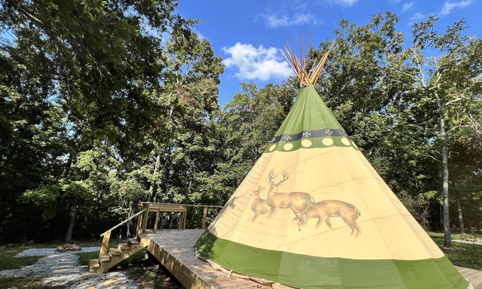 Glamping in an Authentic Style Sioux Tipi in the Heart of the Ozarks “The Deer” | RV Rental in Mountain View