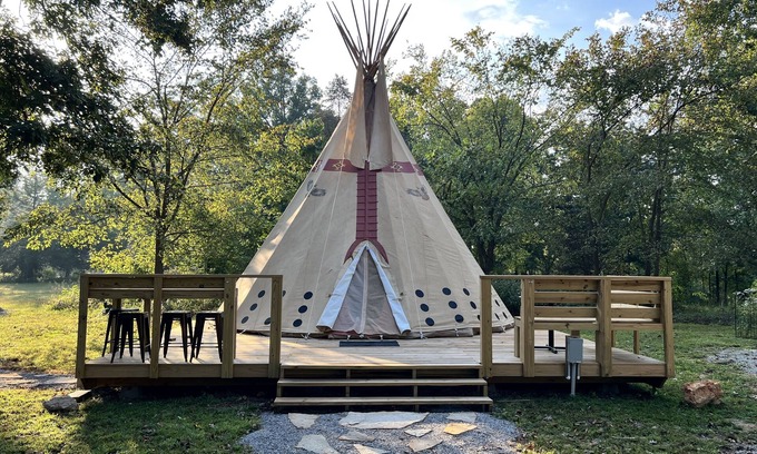 Glamping in an Authentic Style Sioux Tipi in the Heart of the Ozarks “The Elk” | RV Rental in Mountain View
