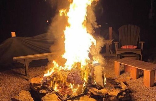 Guests share a large fire pit. Bath house, which is like stepping into your own bathroom
