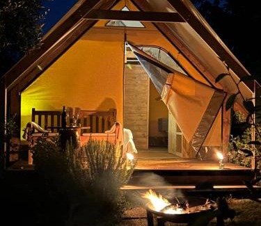 Providing a garden, GLAMPING SUITE IL GRILLO features accommodations in Lamporecchio. With pool views, this accommodation provides a balcony and a swimming pool. There's a sun terrace and guests have access to free Wifi, free private parking, and an electric vehicle charging station. Towels and bed linen are provided in the luxury tent. The accommodation offers an air conditioning, a heating, and a private bathroom. During warmer months, you can make use of the barbecue facilities and eat on the private patio. If you'd like to discover the area, cycling is possible in the surrounding area, and the luxury tent can arrange a bicycle rental service. Montecatini Train Station is 12 miles from GLAMPING SUITE IL GRILLO, while Fortezza da Basso Convention Center is 28 miles away. Florence Airport is 27 miles from the property.
