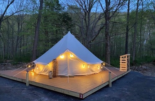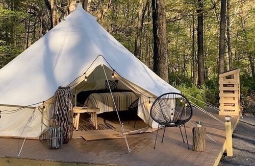 Glamping Tent in the Trees at River Mountain Resort is located in Buffalo Mills. Glamping Tent in the Trees at River Mountain Resort provides accommodation, featuring Pet Friendly, Designated Smoking Area, Balcony/Terrace, among other amenities. This RV Rental features Pet Friendly, Designated Smoking Area, Balcony/Terrace, to make your stay a comfortable one.