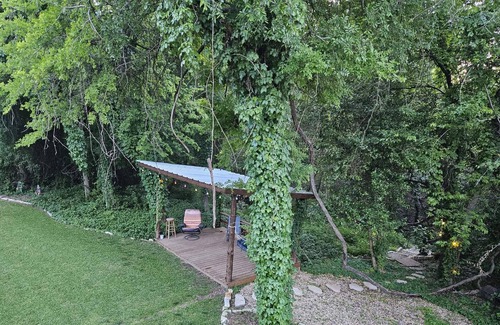 Your Glamping experience awaits you at Liberty Hill Hideaway lake retreat. Stay in The Daisy, our remodeled vintage RV with her eclectic vibe, plumbing, DirecTV, kitchenette, sleeps 4 and dig the outdoor shower.