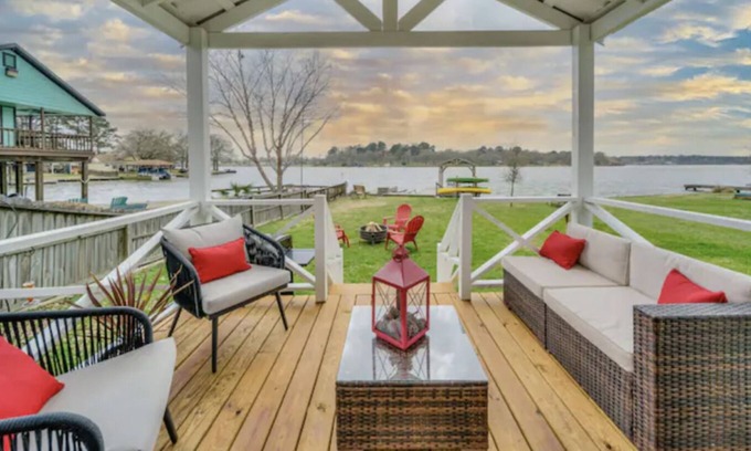 A true waterfront glamping getaway & brand new for 2021! The Cottage is a modern farmhouse-inspired Tiny House with a fresh & contemporary selection of comfortable furnishings & decor, plus wifi & 2 Smart TV's. Unobstructed premium lake views, plus direct access to the lake/dock, makes this property a special rare find. Book & get complimentary use of Paddleboards & Kayaks! This is the escape you need, right on Lake Conroe, Houston's Playground! Excellent fishing, boats welcome.