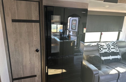 Escape to the perfect blend of clamping & comfort in this stylish camper that sleeps up to 7 guests & boasts 1.5 bathrooms-giving you just the right balance of space and convenience. Whether you're sipping handcrafted cocktail under the stars or unwinding after a day of exploring, this cozy hideaway is designed for laid-back luxury. Order mimosas when you wake up before hopping on the trolley to nearby wineries & distilleries for a day of tastings and fun. And when the night winds down? Take in gorgeous sunset views from your private outdoor seating area with a fire pit & treat yourself to late-night snacks and bartender-crafted cocktails, delivered right to your doorstep until 1am (because great nights don't have to end early!). Whether you're toasting under the stars or curling up inside this beautifully designed space, glamping has never been this indulgent- cozy vibes, well crafted cocktails, and an unforgettable sunsets await!