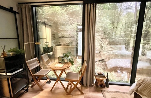 Welcome to Nature Rooms! Enjoy a unique creekside stay in Red River Gorge at our glass house, a perfect choice for a luxurious glamping escape. Combining modern style with natural touches, this newly-built space creates a cozy retreat with an amazing mirrored exterior and full window glass interior view. Set on 26 acres of woodlands, and just 15 minutes from Natural Bridge State Park. Come enjoy a one-of-a-kind getaway!