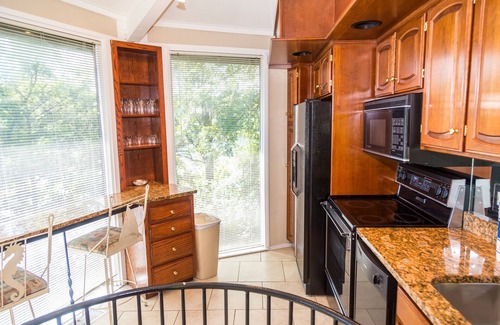 Fully equipped kitchen for your everyday needs with a Brand New Granite Counter bar that seats up to 4. Spiral stairs to lower level.