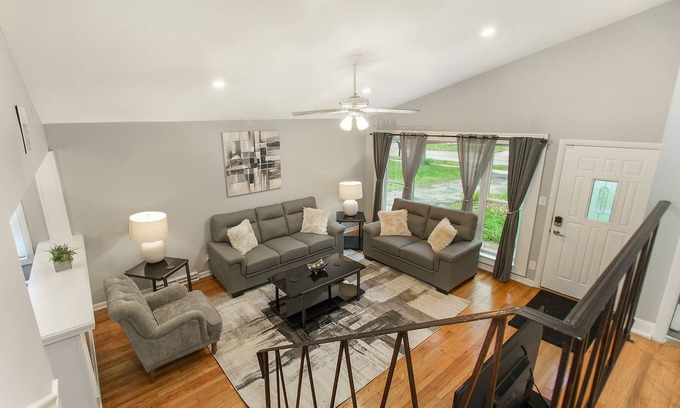 1700 SF renovated unit is 21 min away from downtown Naperville, which is like a bustling mini-Chicago, including a beach and plenty of bars/restaurants! This property has 3 bedrooms, & 2 bathrooms. Master bedroom has A KING BED, 2 Bedrooms have a Queen. 1 air mattress on-site (Total of 4 beds). Plenty of Kitchen utensils, all you need in a kitchen, including cooking spices and oils! Children friendly & lots of technology!