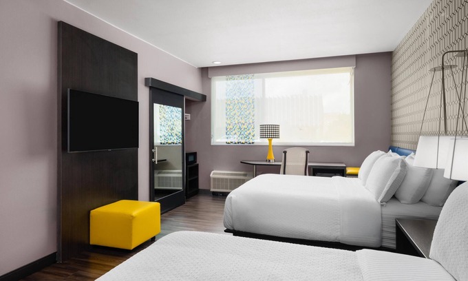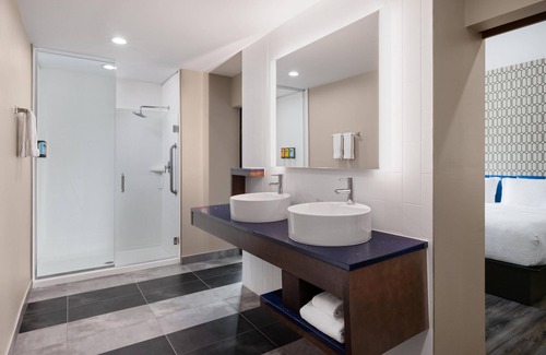 Recreational amenities at the hotel include an indoor pool and a 24-hour fitness center.