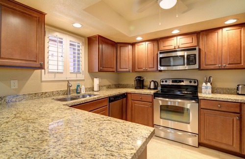 You will enjoy a fully stocked kitchen with everything you’ll need to prepare a meal including a full set of cookware, dishes, silverware, glasses, coffee and tea. The condo features tile throughout, and the spacious king bedroom has a walk-in closet, and a comfortable bed all new comfortable furniture with quality bedding and another smart TV. Sprouts, Whole Foods, and Trader Joe’s each a short drive away. Easy access to freeways leading to Old Town Scottsdale, and Phoenix Sky Harbor Airport, also just a short 10 minute drive to Kierland Commons & Scottsdale Quarter, both offering unique, upscale shops and restaurants. Enjoy a great walk on the green belt surrounding the Stonecreek Golf Course. Also close to The Barrett Jackson Auction, The Phoenix Open, Top Golf, the Phoenix Mountains Preserve, the Musical Instrument Museum, and Talking Stick Casino.