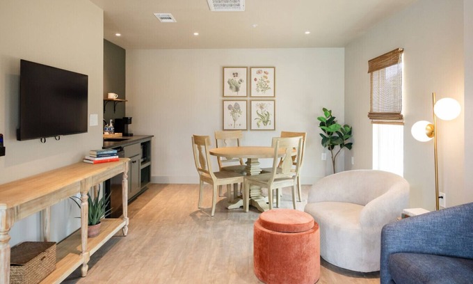 Modern Boutique Stay Steps from the Silos & Baylor! Welcome to your home away from home in the heart of Waco! This beautifully designed 1-bedroom, 1-bath boutique unit offers comfort, style, and an unbeatable location—just a 2-minute walk to Magnolia Silos and 5 minutes to Baylor University. Relax in a cozy yet modern suite featuring a private bedroom, modern and spacious walk-in shower, and a convenient dining area equipped with a mini-fridge and microwave. Whether you're visiting for a weekend getaway, college visit, or a Magnolia Market adventure, you'll feel right at home. We like to say “Welcome Home to Waco” ✨ What You’ll Love: Walkable location near top Waco attractions Stylish, boutique interiors Comfy queen bed with high-quality linens Smart TV & fast WiFi In-room kitchenette for quick meals or snacks Free on-site parking Communal pool steps outside your door 📍Prime Location: 2-min walk to Magnolia Market at the Silos 5-min drive or 15-min walk to Baylor University Close to Waco res