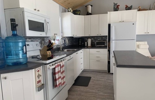 Cottage: fully equipped also includes drinking water, coffee, tea, salt & pepper, some spices, dish cloths/towels, paper towels, toilet paper, bedding, pillows, running water with hot water on demand.