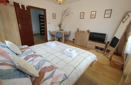 Gościniec pod Skółką is a recently renovated homestay in Łącko where guests can make the most of the garden and barbecue facilities. The property is around 19 miles from Niedzica Castle, 28 miles from Treetop Walk, and 29 miles from Bania Thermal Baths. There's an outdoor fireplace and guests can use free Wifi and free private parking. A flat-screen TV with satellite channels and a Xbox 360 are available. The homestay offers bed linen, towels, and daily room service. A selection of options including warm dishes, pancakes, and fruit are available for breakfast, and breakfast in the room is also available. For guests with children, the homestay features outdoor play equipment. The homestay has a picnic area where you can spend the day outdoors.