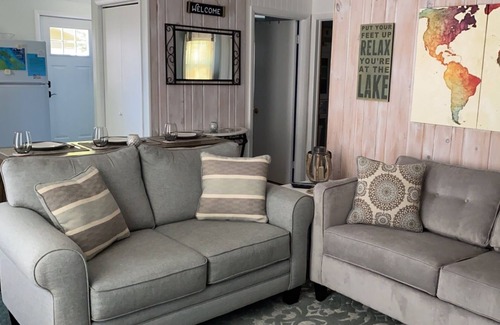 This cozy cabin offers amazing views in a quiet, relaxing setting offering both gorgeous sunsets an sunrises. During the day, enjoy jumping off the dock into the clear water an relax while listening to the waves crash along the shoreline.