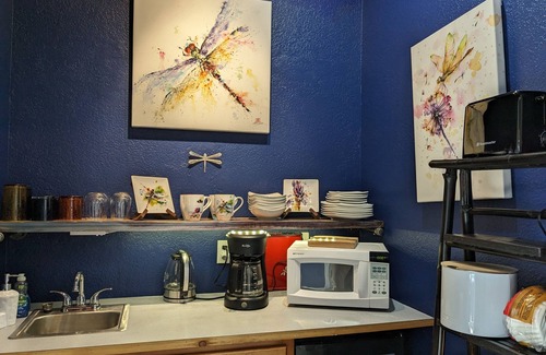 Stroll the property, photograph nature or just sit by one of Dragonfly's ponds.Over 10,000 gallons flow through the ponds continuously. Catch the sunrise or sunset over a pond as Koi swim beneath.
