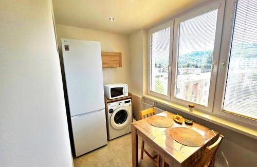 Golden Apartment Prešov is located in Prešov, just 24 miles from Spis Castle and 23 miles from Hrnciarska street. The property is around 23 miles from Kosice Train Station, 24 miles from Cathedral of St. Elizabeth, and 24 miles from Steel Arena. There's a sun terrace and guests can use free Wifi and free private parking. Leading onto a balcony with quiet street views, the apartment consists of 1 bedroom. The air-conditioned apartment also provides a flat-screen TV, a fully equipped kitchen with a microwave, a seating area, washing machine, and 1 bathroom with a walk-in shower. For added privacy, the accommodation features a private entrance. A mini-market is available at the apartment. For guests with children, the apartment offers outdoor play equipment. Gothic Church Zehra is 25 miles from Golden Apartment Prešov, while Bankov is 25 miles away. Kosice International Airport is 26 miles from the property.