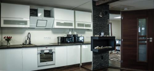 Offering barbecue facilities, Golden Beach Apartment features accommodations in Chlʼaba. Both free Wifi and parking on-site are accessible at the vacation home free of charge. Featuring a terrace with river views, this vacation home also includes a flat-screen TV, a well-equipped kitchen with a dishwasher, an oven, and a microwave, as well as 1 bathroom with a bath and slippers. The accommodation has a fireplace. Guests at Golden Beach Apartment can enjoy hiking nearby, or make the most of the garden.